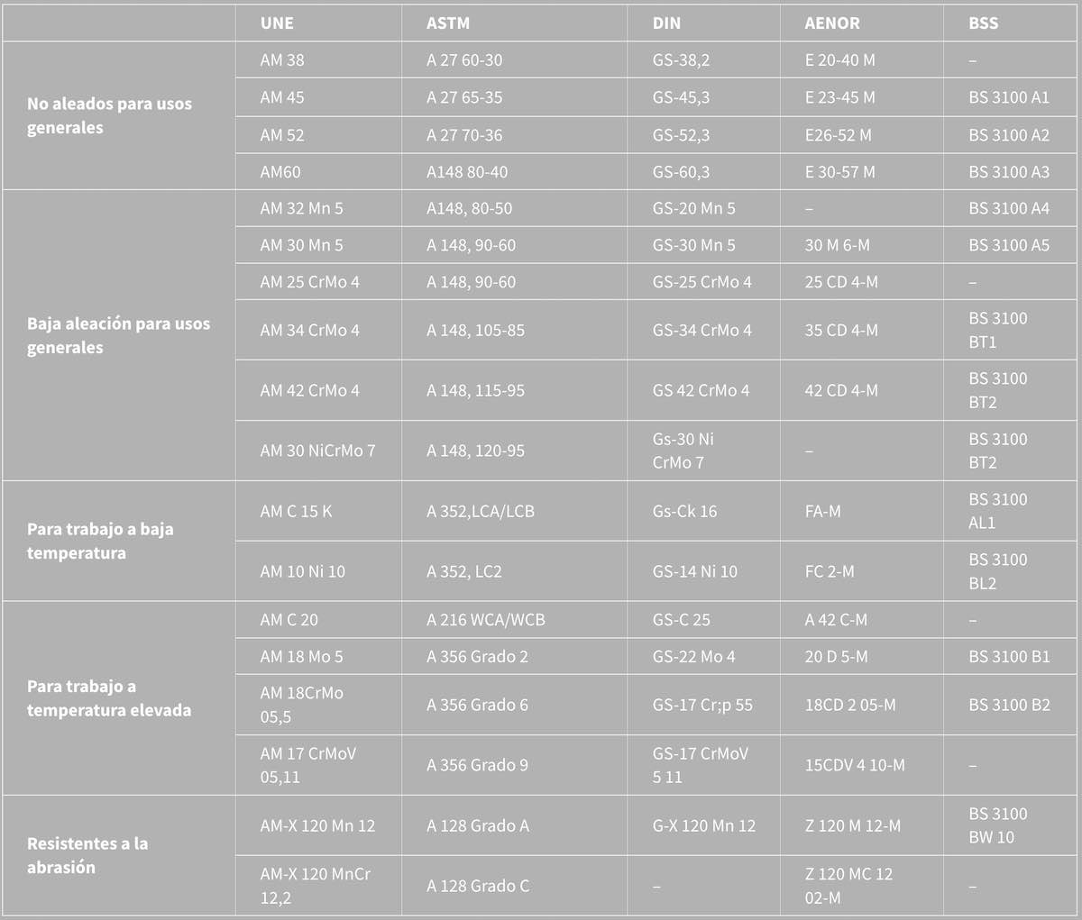 Resistentes a la abrasión AM-X 120 Mn 12 A 128 Grado A G-X 120 Mn 12 Z 120 M 12-M BS 3100 BW 10